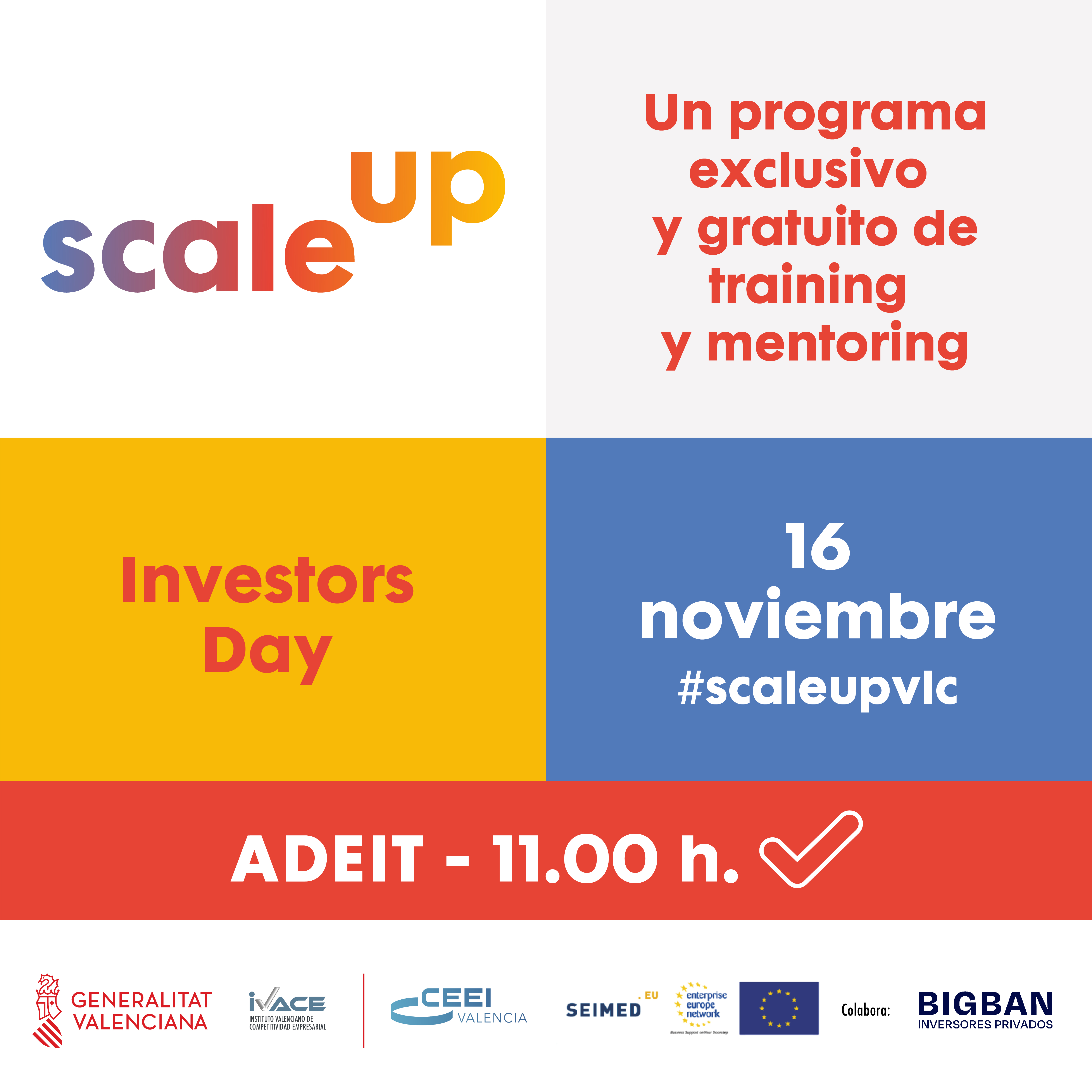 SCALE UP Investors Day, tendrá lugar el 16 de noviembre de 2021 en Valencia.