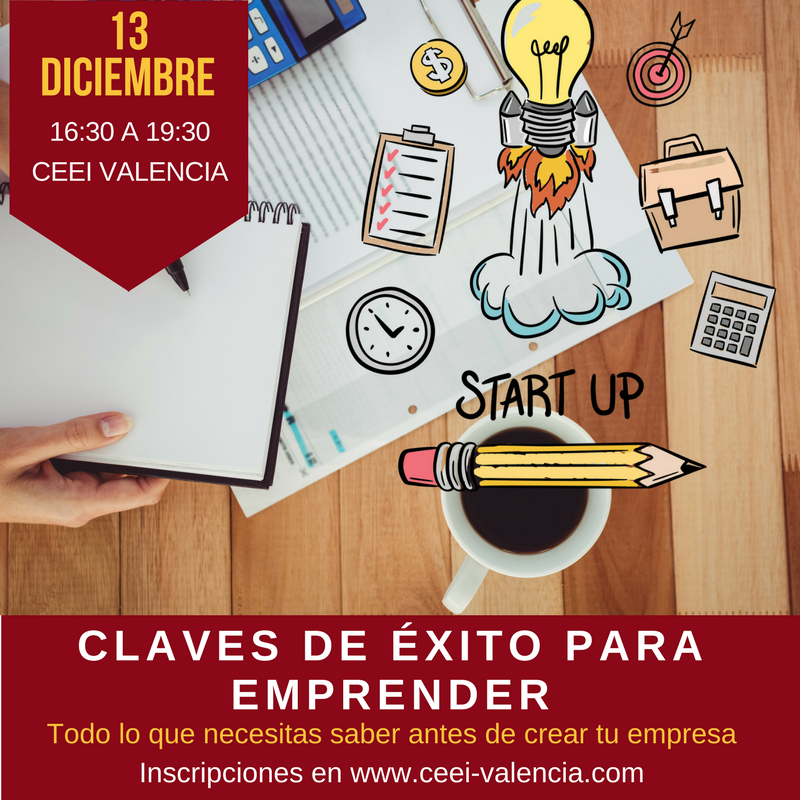 ¿Te has planteado alguna vez trabajar por tu cuenta y montar un negocio? El próximo MIÉRCOLES 13 de diciembre, en sólo 2 horas, expertos del Centro Europeo de Empresas Innovadoras de Valencia (CEEI Valencia) se encargarán de sentar las bases para acelerar el proceso de convertir tu idea en empresa.