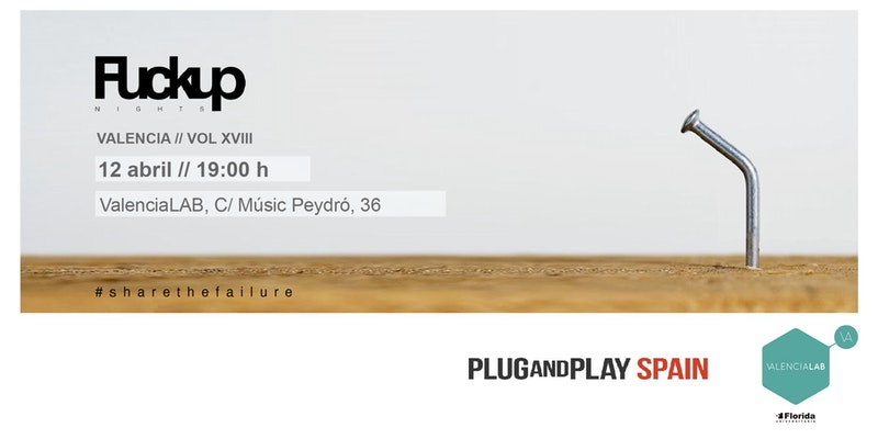 El jueves 12 de abril de 2018, a las 19:00 hs., ValenciaLAB y Plug&Play os invitamos al vol. XVIII de Fuckup Nights Vale