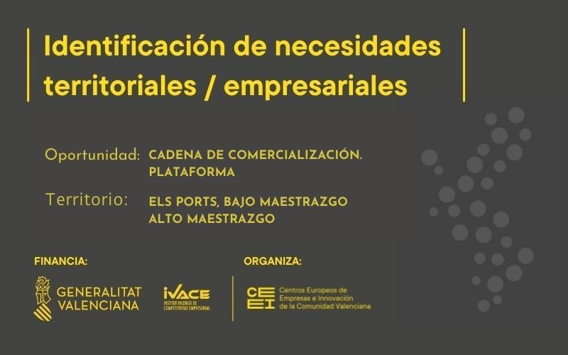 CEDES ALBOCÀSSER - DIPUTACIÓN DE CASTELLÓNCEDES MORELLA - DIPUTACIÓN DE CASTELLÓNMANCOMUNITAT ALT MAESTRATPacte territorial per l'ocupació Castelló NordMancomunitat Comarcal Els PortsReactiva Els PortsGAL Maestrat Plana Alta LEADERSECOT Castellón. Voluntariado Senior de Asesoramiento Empresarial.VINALAB CENTRO DE CONOCIMIENTOactibeACCIONATEPACTE TERRITORIAL PER L´OCUPACIÓ MAESTRAT LITORAL