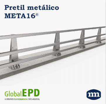 El pretil metálico META16 es un sistema de contención de vehículos diseñado para su instalación en bordes de tableros de puentes, obras de paso, coronaciones de muros de sostenimiento y obras similares. Es un dispositivo homologado según la norma UNE EN 1317 partes 1 y 2 que junto con el cumplimiento de la parte 5 en materia de control de producción, ha obtenido el marcado CE.