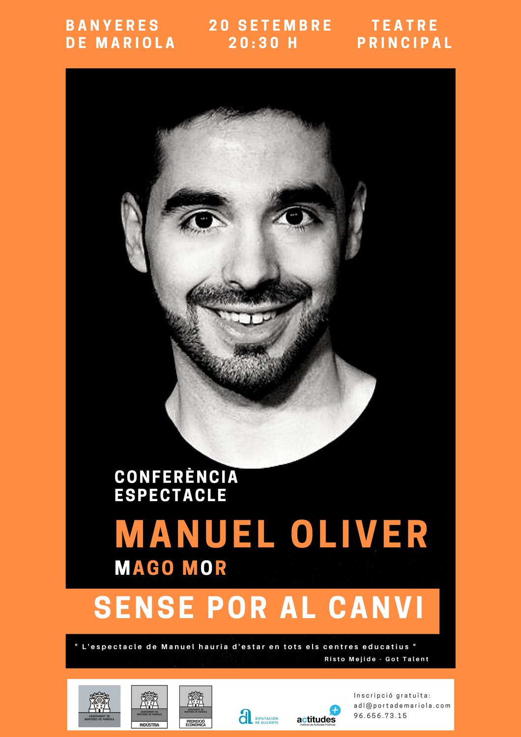 Conferencia "Sin Miedo al Cambio" con MAGO MOR, Manuel Oliver el 20 de septiembre a las 20:30 horas en el Teatro Principal de Banyeres de Mariola.