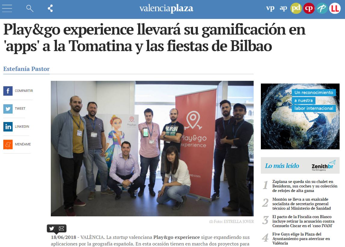 Otro proyecto valenciano, Play&go experience, ha sido noticia esta semana en Valencia Plaza porque sigue expandiendo sus aplicaciones por la geografía española. En esta ocasión tienen en marcha dos proyectos para fiestas que son referentes en España: la Tomatina de Buñol y Aste Nagusia, la fiesta grande de Bilbao.