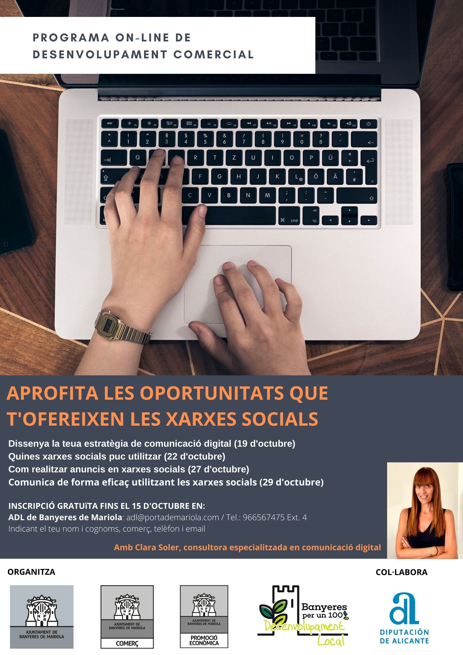 El programa Aprofita les oportunitats que t'ofereixen les xarxes socials está dirigido a comercios de Banyeres de Mariola. El curso se estructura en 4 sesiones de formación teóricas y prácticas que tendrán lugar de forma on-line a través de la plataforma Teams.