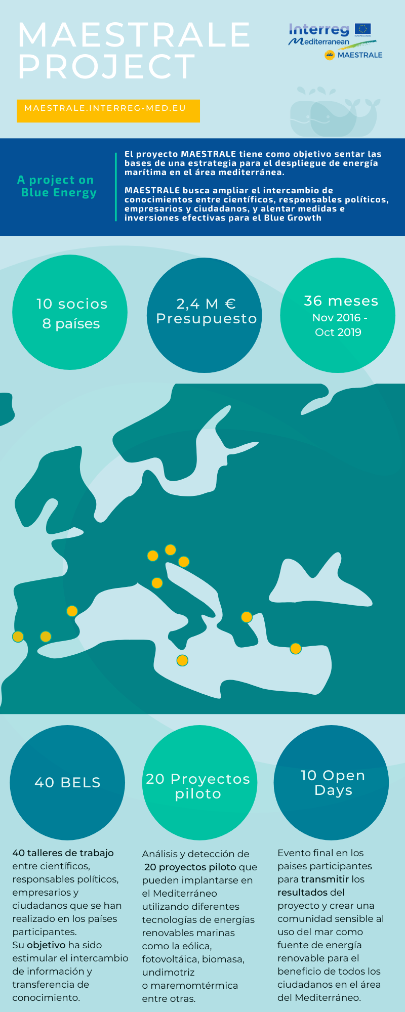 El proyecto MAESTRALE  ha contado con un presupuesto de 2,4 millones de euros para sentar las bases de una estrategia para el despliegue de energía marítima en el área mediterránea, ampliar el intercambio de conocimientos entre científicos, responsables políticos, empresarios y ciudadanos, y alentar medidas e inversiones efectivas para el Blue Growth.