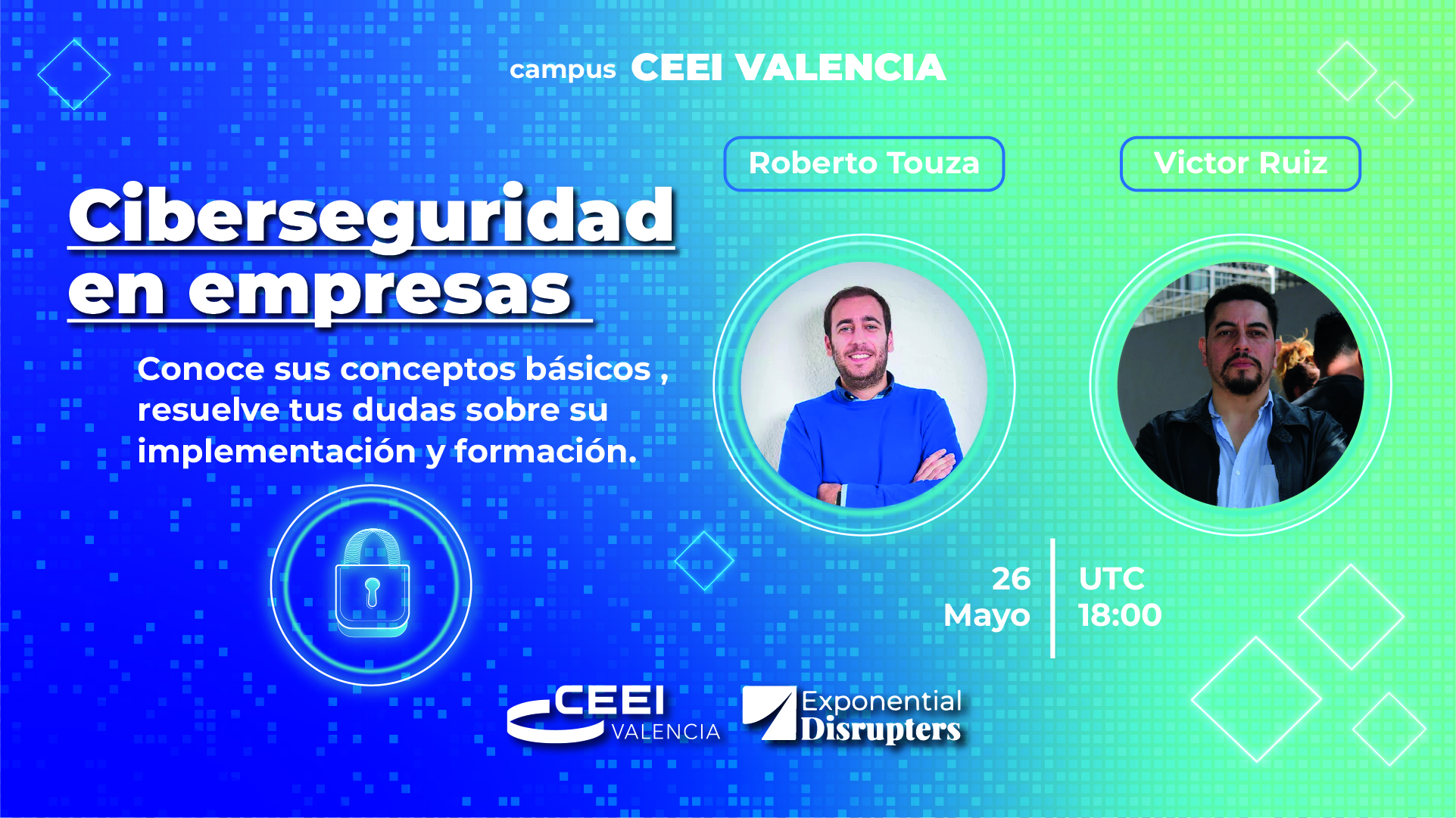 Victor Ruíz  liderará esta sesión junto a Roberto Touza experto en Lean startup e innovación quienes estarán brindando sus conocimientos y resolviendo todas las dudas a los asistentes este 26 de mayo a las 18:00 horas