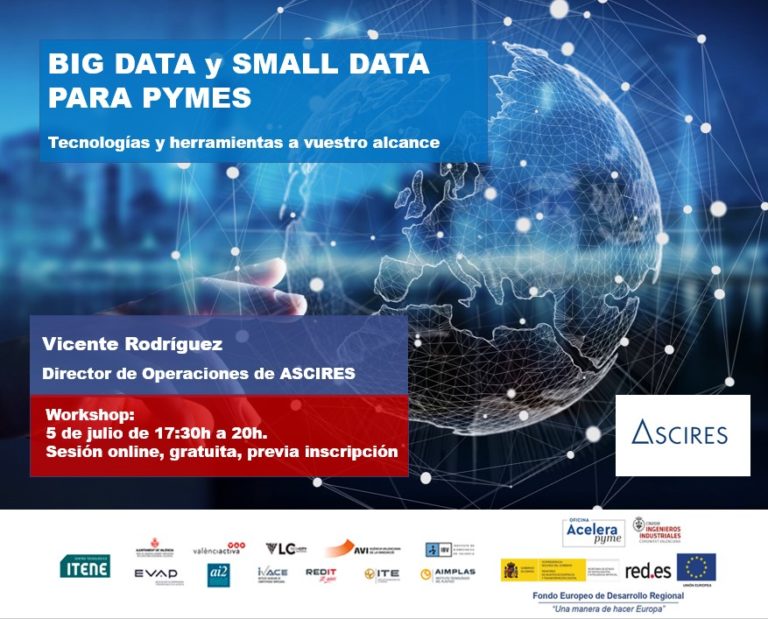 En este workshop, Vicente Rodríguez Sanchís, director de operaciones de ASCIRES, mostrará las soluciones más sencillas y asequibles para que las pymes empiecen a sacar partido de ese activo tan valioso: LOS DATOS.