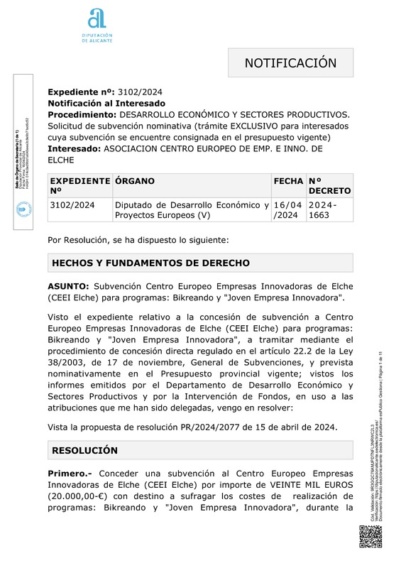 Subvención nominativa CEEI Elche-Diputación Alicante 2024