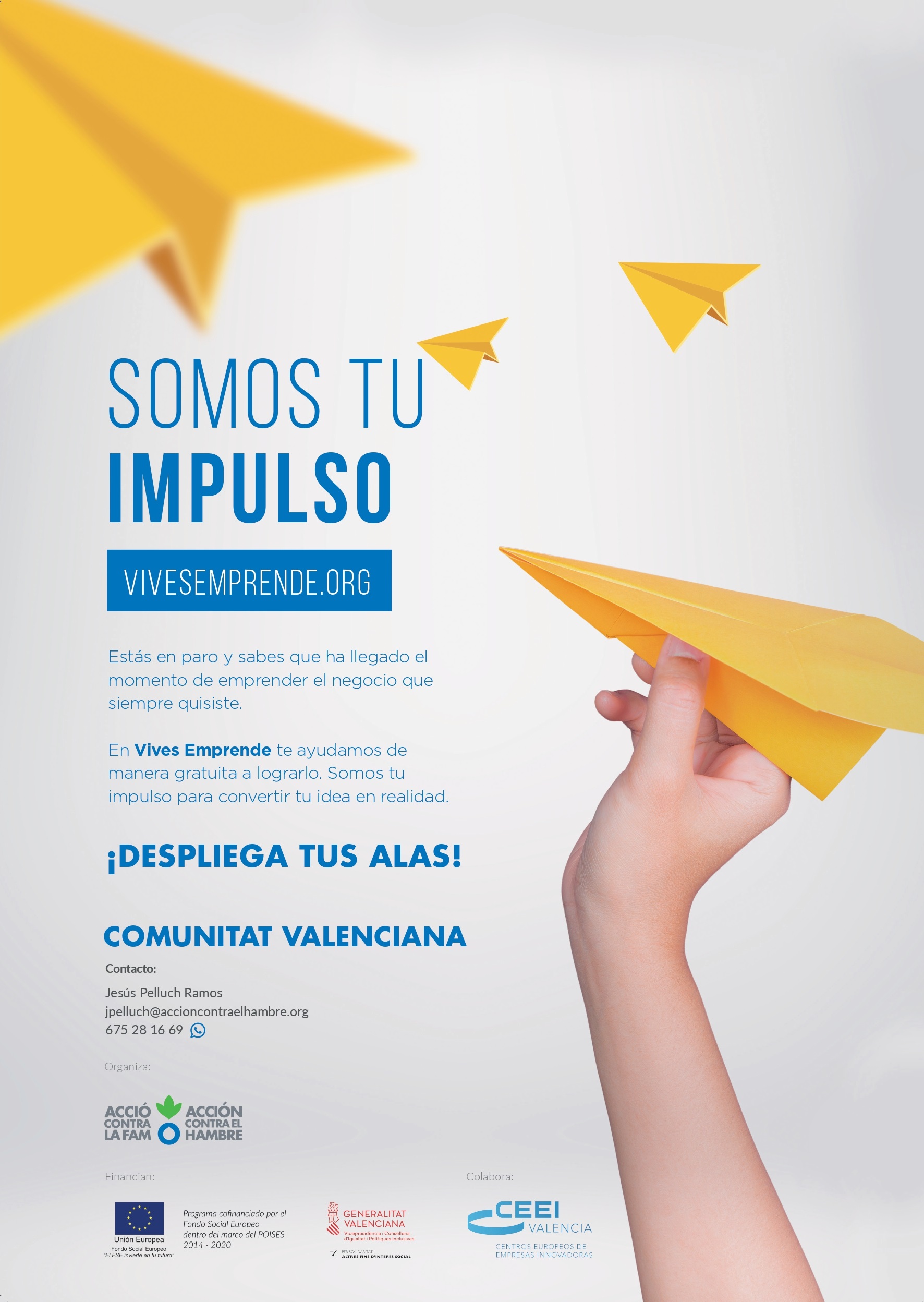 Todas las personas soñamos con emprender alguna vez en la vida pero no lo hacemos porque tenemos miedo. Ahora somos tu impulso para que hagas realidad tu idea con el programa Vives Emprende: Te acompañamos durante todo el proceso emprendedor para que desarrolles tu plan de negocio y conozcas distintos accesos a la financiación. Accederás a talleres formativos para mejorar tu idea de negocio.
