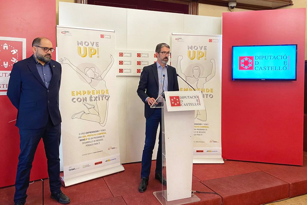 CEEI Castellón y Diputación de Castellón han presentado hoy la quinta edición del programa Move Up! Emprende con éxito, tras conseguir la implantación de 97 proyectos empresariales en 32 municipios de la provincia en sus cuatro primeras ediciones. Una edición muy especial, con un programa diseñado específicamente para que su formato pueda pivotar de lo presencial a lo semipresencial o bien lo ‘on line’ según la situación en que se encuentre la crisis sanitaria.