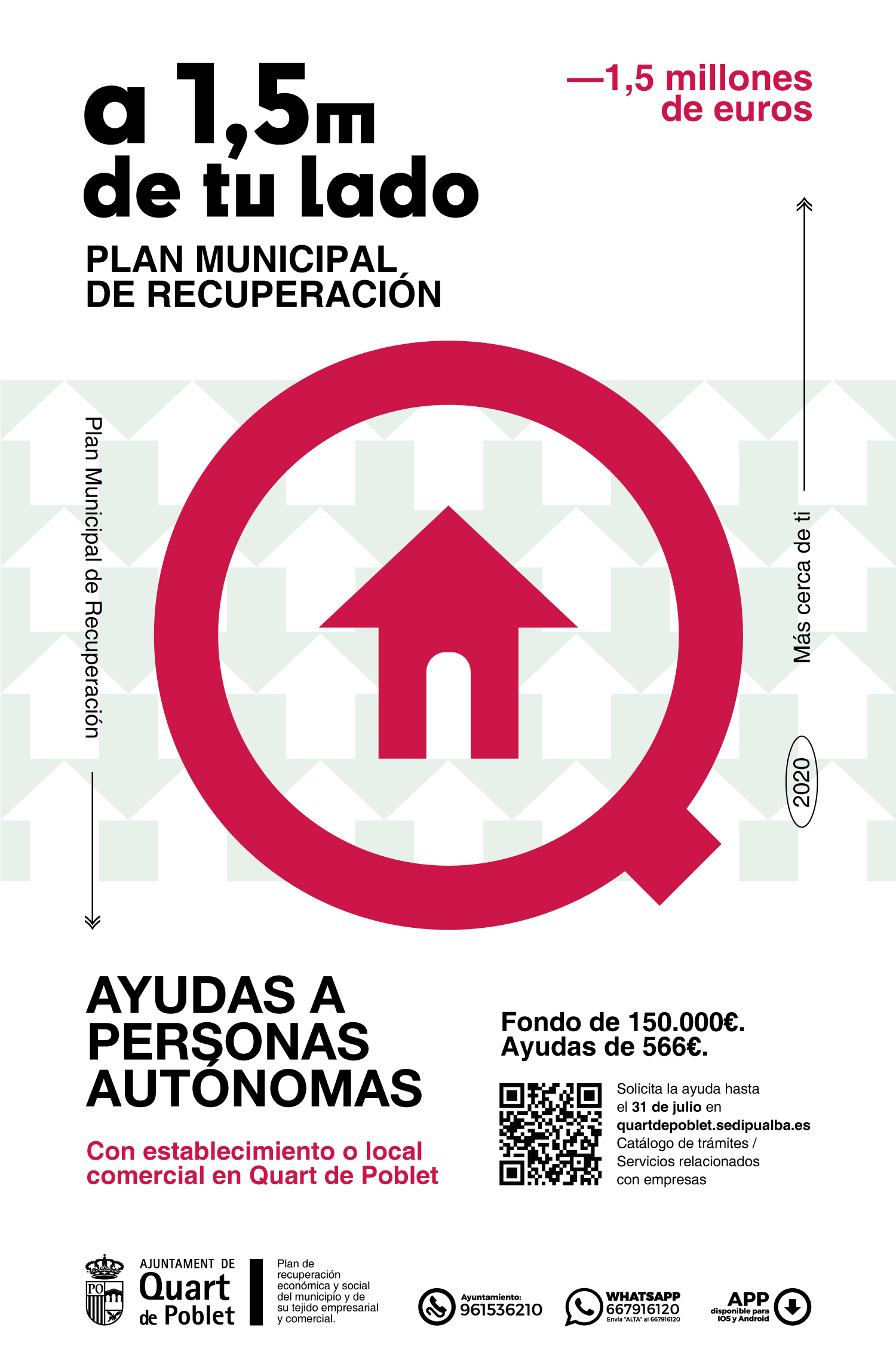 La presente convocatoria tiene como objeto otorgar ayudas directas de las personas autónomas con establecimiento/local comercial en Quart de Poblet cuya actividad económica se ha visto altamente afectada, para hacer frente a los gastos corrientes y su reactivación, (alquileres, seguros, luz, agua, internet, vigilancia y seguridad, gestoría, seguros...), ante la situación de crisis sanitaria y económica producida por COVID19.