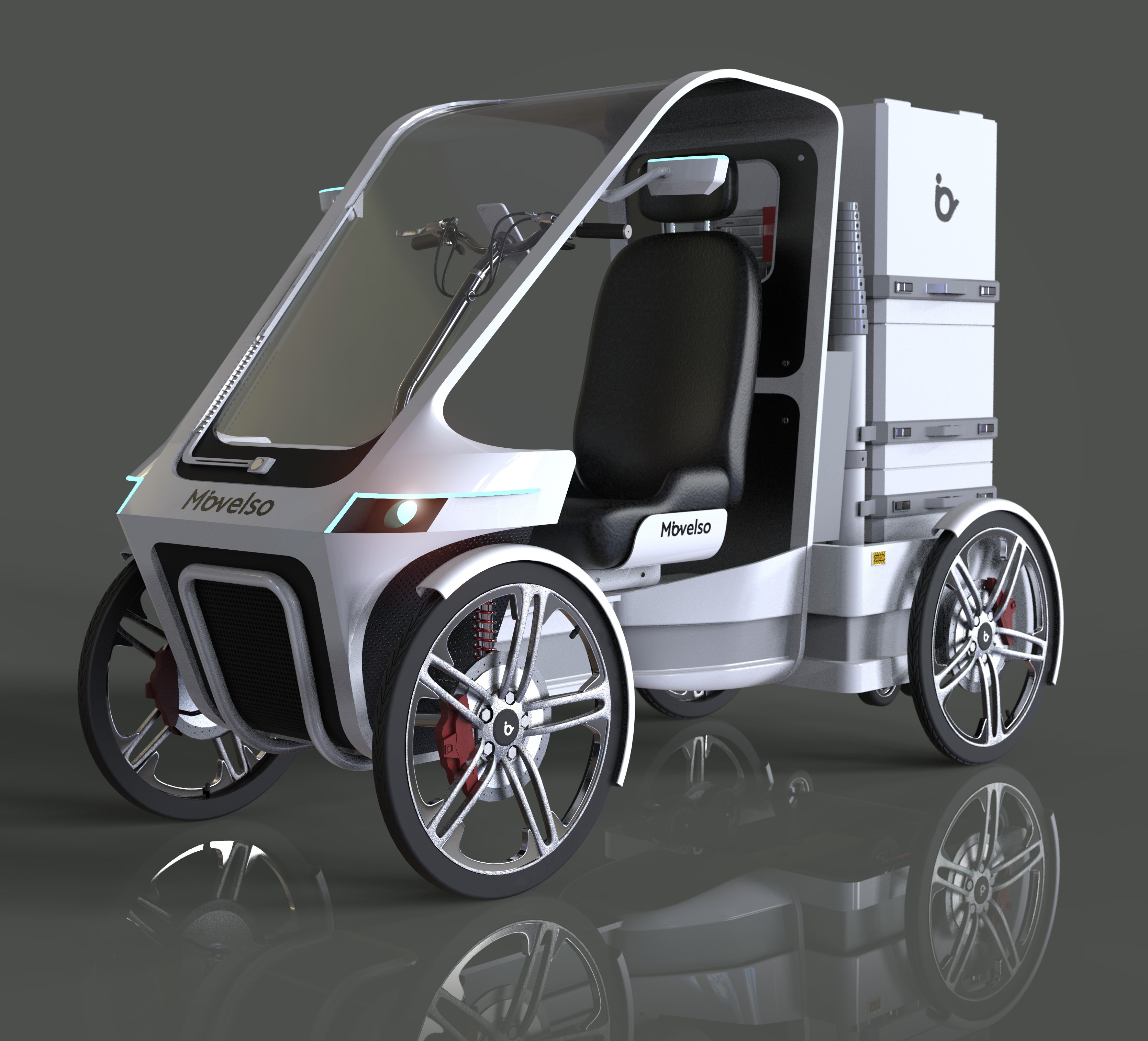 Si, este nuevo vehículo está homologado como una bici eléctrica, pero se asemeja a un coche, ya que dispone de techo, parabrisas y puertas opcionales. Combina lo mejor de las bicicletas eléctricas, con la agilidad y tamaño de las motos, la seguridad de un coche y el almacenamiento de una furgoneta. Las dimensiones son muy contenidas y goza de una capacidad de carga similar a una furgoneta y aumenta la funcionalidad ya que toda la carga es modular y además todo este maletero se puede cargar y descargar del vehículo todo a la vez sin esfuerzo, eliminando la carga y descarga, lo que se traduce en una mejora de la productividad muy sustancial y elimina las pérdidas de tiempo. Las baterías del vehículo se alojan en el maletero descargable y transportable, por lo que el usuario puede hacer uso de la misma a modo de estación de energía. Se alimentan de una placa solar alojada en el techo del vehículo.