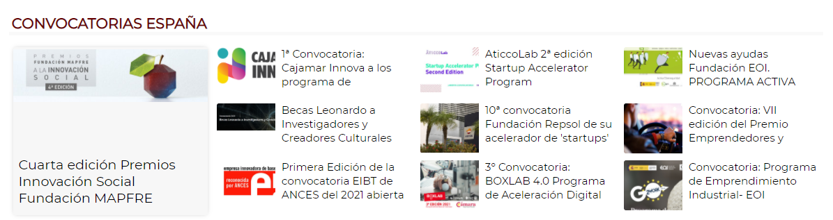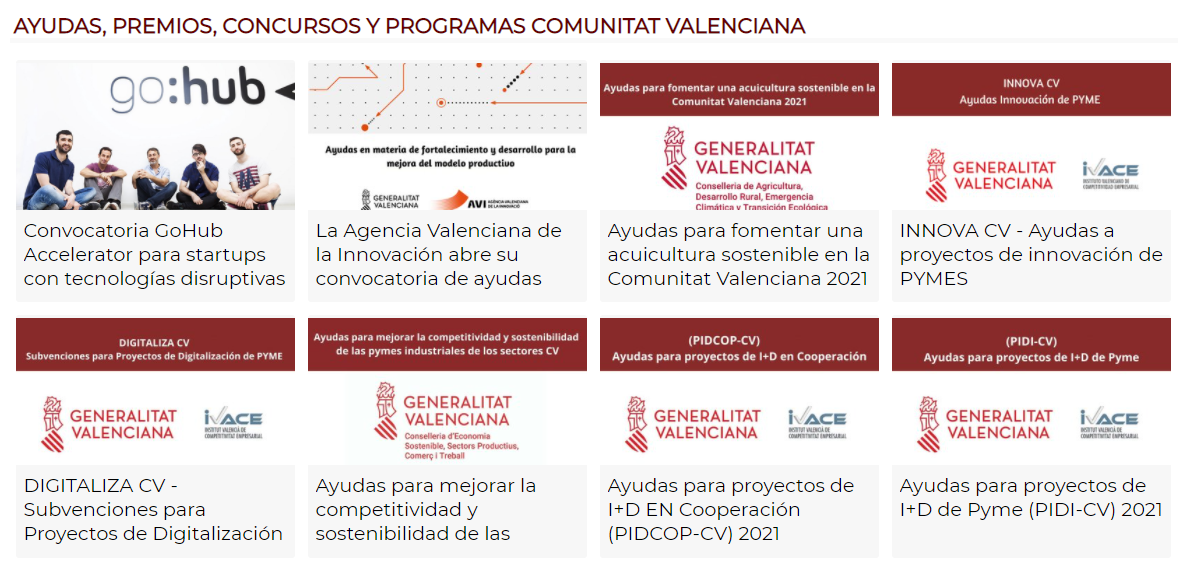 En este sentido, se publican diariamente Ayudas y Subvenciones de carácter local, Comunitat Valenciana, España, o internacional, convocadas por diferentes organismos. Pero también se hace difusión de todos aquéllos Programas, Premios y Concursos organizados por diferentes entidades que se consideran de interés para el ecosistema valenciano.