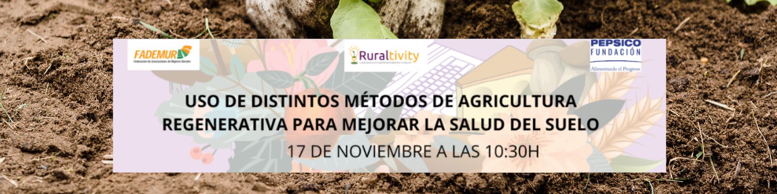Dentro del programa Ruraltivity, FADEMUR celebra una nueva formación online titulada “Uso de distintos métodos de agricultura regenerativa para mejorar la salud del suelo”, que se desarrollará el lunes 17 de noviembre a las 10:30 h en modalidad online.