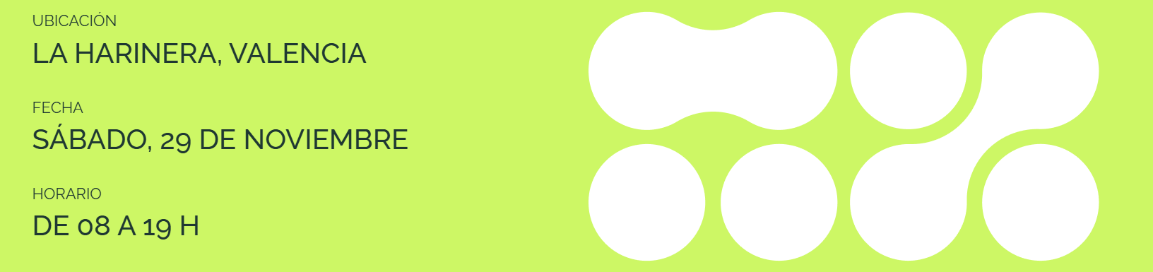 FECHA, HORA Y LUGAR: 29 de noviembre de 8.00 a 19.00h. La Harinera, Valencia.