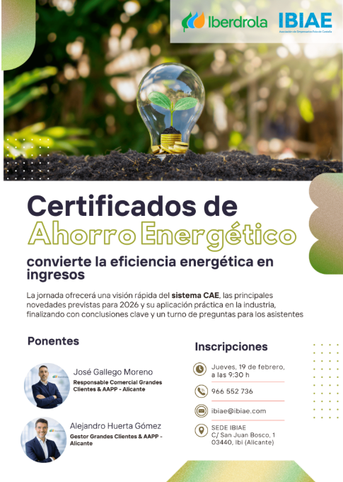 IBIAE e Iberdrola organizan una jornada informativa dirigida a empresas e industrias para dar a conocer el funcionamiento de los Certificados de Ahorro Energético (CAE), un sistema que permite transformar los ahorros de energía en ingresos económicos.