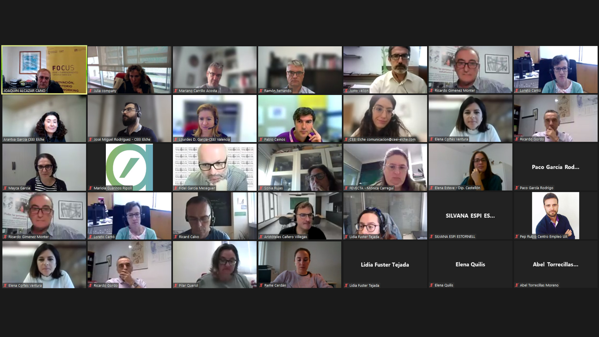 En esta reunión han participado representantes de IVACE, Parque Científico de la UMH, Observatorio Ocupacional UMH, Diputació Provincial de València, Diputación Provincial de Castellón, Turisme GVA, Ajuntament de Castelló, Asociación de Trabajadores Autónomos de la Comunidad Valenciana, ESIC Business&Marketing School, AESAL CV, Agenda AVANT Generalitat Valenciana, GRIDET, Fundación Universitat Jaume I - Empresa, Fundació Nova Feina de la Comunitat Valenciana, REDIT, SECOT Valencia, SECOT Castellón, Consejo de Cámaras de Comercio de la CV, Jovempa Elche, PEAKS Business School, AEPA, Impulsa Alicante, Centro de Empleo de la Universidad de Alicante, AECTA, AVAESEN, Entidad Urbanística de Conservación de Elche Parque Industrial, CEEI Elche, CEEI Castellón y CEEI Valencia.