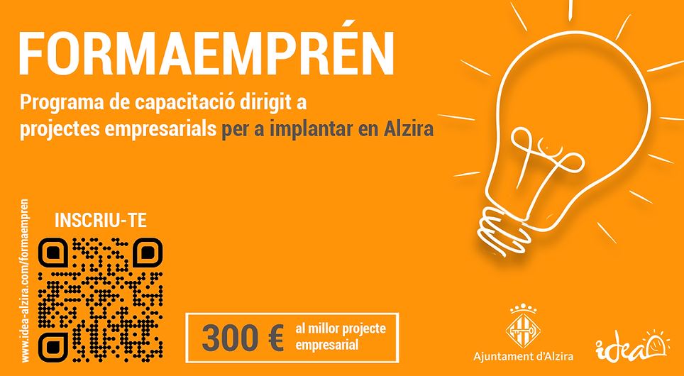 Además se premiará el MEJOR PROYECTO EMPRESARIAL con una Tarjeta de Alzira valorada en 300€, el cual será seleccionado en la última sesión, donde los participantes realizarán la presentación de su proyecto ante un comité de expertos.