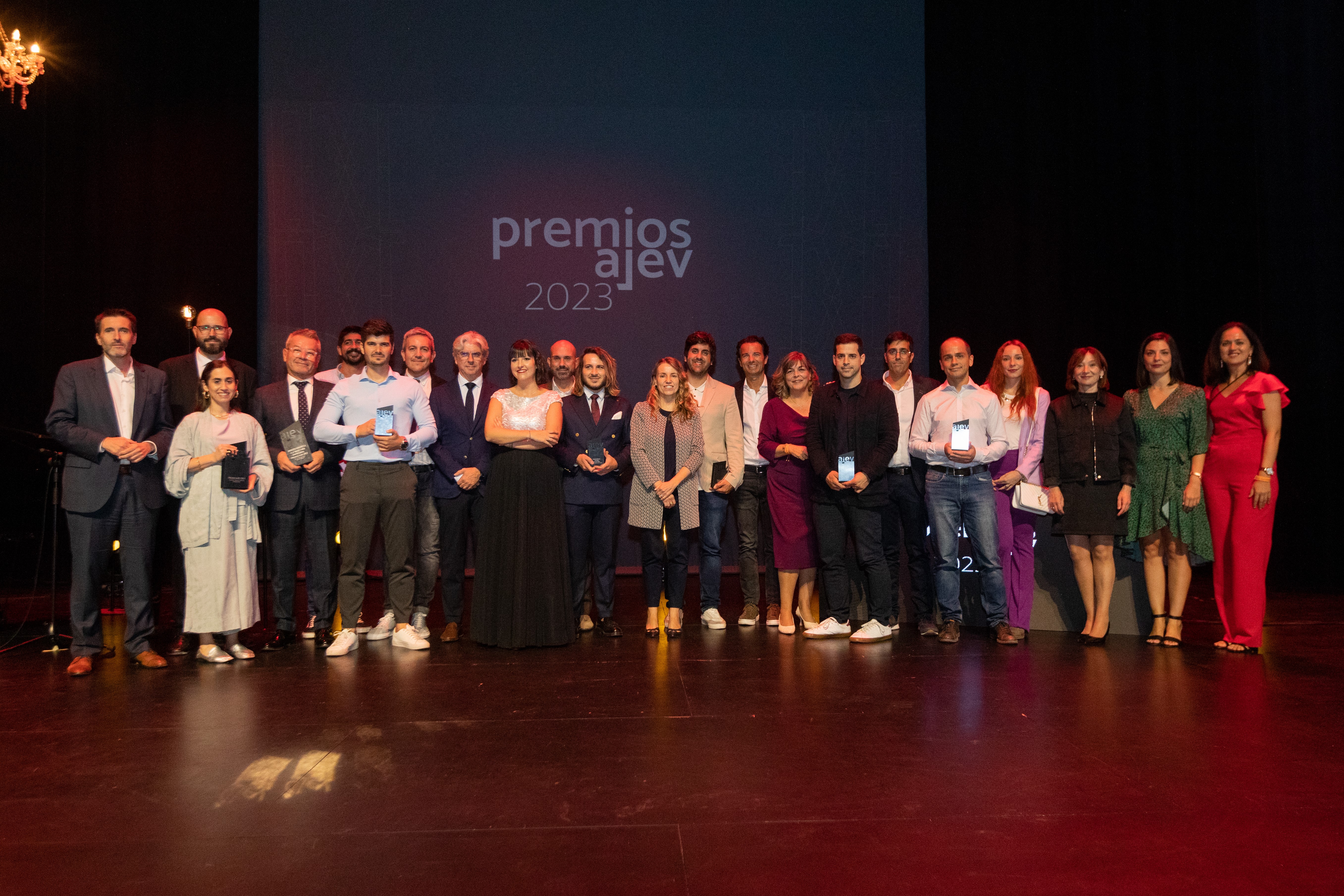 Ganadores Premis¡os AJEV 2023 junto a personalidades y patrocinadores