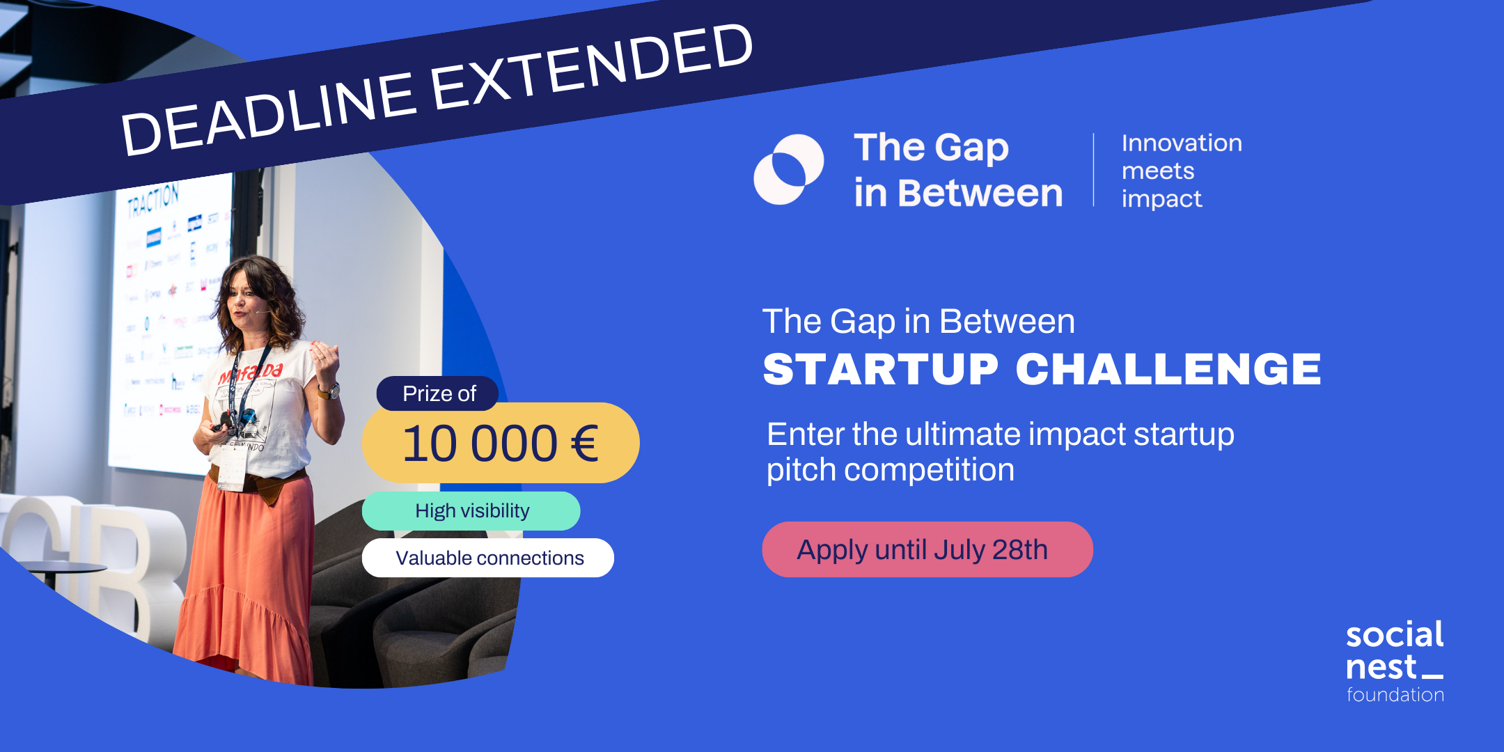 The Gap in Between Startup Challenge tiene como objetivo promover el emprendimiento con impacto social y medioambiental. El desafío pretende convertirse en una plataforma líder para que las startups más innovadoras presenten soluciones que aborden los principales retos de nuestra sociedad.