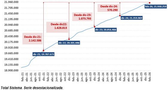 Datos de febrero de 2026 muestran crecimiento sostenido de la afiliación y consolidan la participación femenina en el mercado laboral