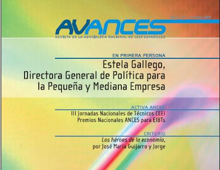 AVANCES, es la revista que trismestralmente publica la Asociación Nacional de CEEI Españoles (ANCES) Con la colaboración de los 25 CEEIS que existen dentro del territorio nacional y de expertos en innovación y otras personalidades y entidades públicas. Una revista en la que encontrarás entrevistas, artículos de opinión, una sección de innovación, convocatorias, información de interés para emprendedores y empresas, y mucho más.