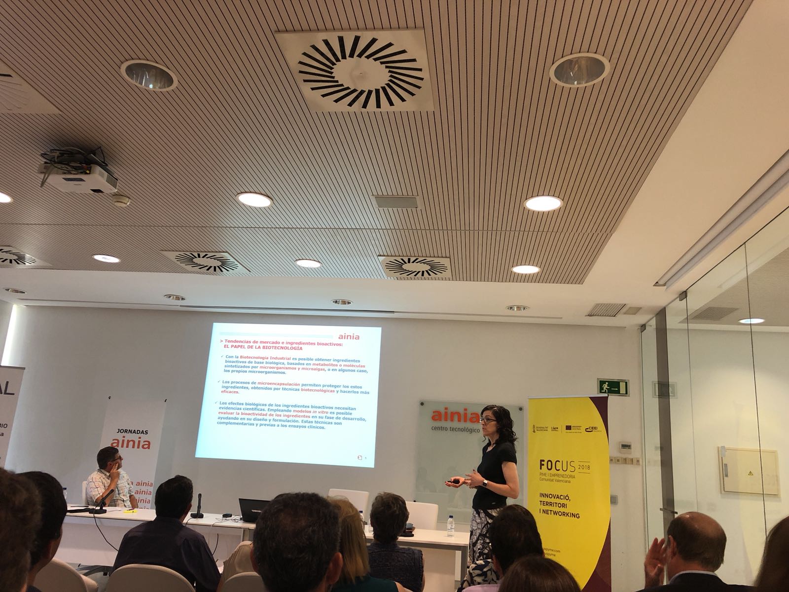 Encuentro Focus Pyme y Emprendimiento "Oportunidades agroalimentarias el papel de la biotecnología", celebrado en el Salón de Actos de AINIA con el objetivo de generar un foro de discusión y de networking sobre cómo la biotecnología contribuye a mejorar sus productos, procesos y servicios. Organizado por el clúster BIO valenciano BIOVAL y AINIA, en colaboración con el CEEI Valencia, IATA, IVIA e Idai Nature.
