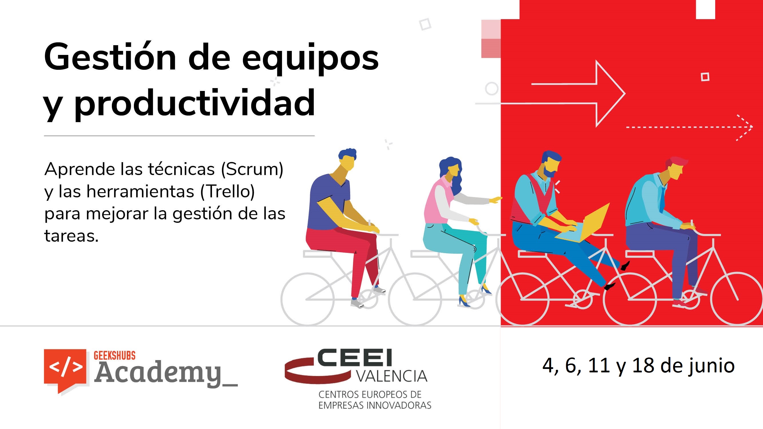 En junio tendrá lugar el Curso Gestión de Equipos y Productividad, formación de 16 horas dónde aprenderás a usar herramientas como Scrum y Trello