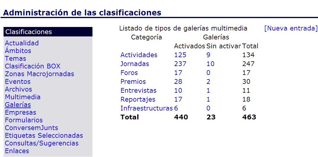 - Fichas: Actualidad, Eventos, Archivos, Multimedia, Galerías, Enlaces, Foros y Consultas/sugerencias